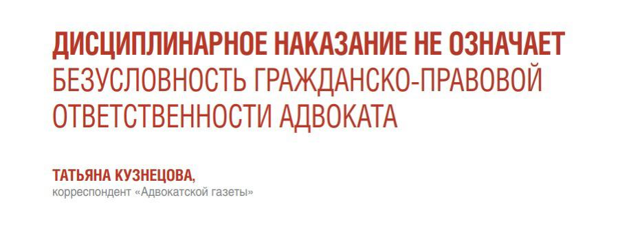 Кроме того, подчеркивается в документе, привлечение адвоката к дисциплинарной ответственности не означает безусловности его последующей гражданско-правовой ответственности, а наличие деликта перед доверителем должно доказываться в гражданском процессе самостоятельно.