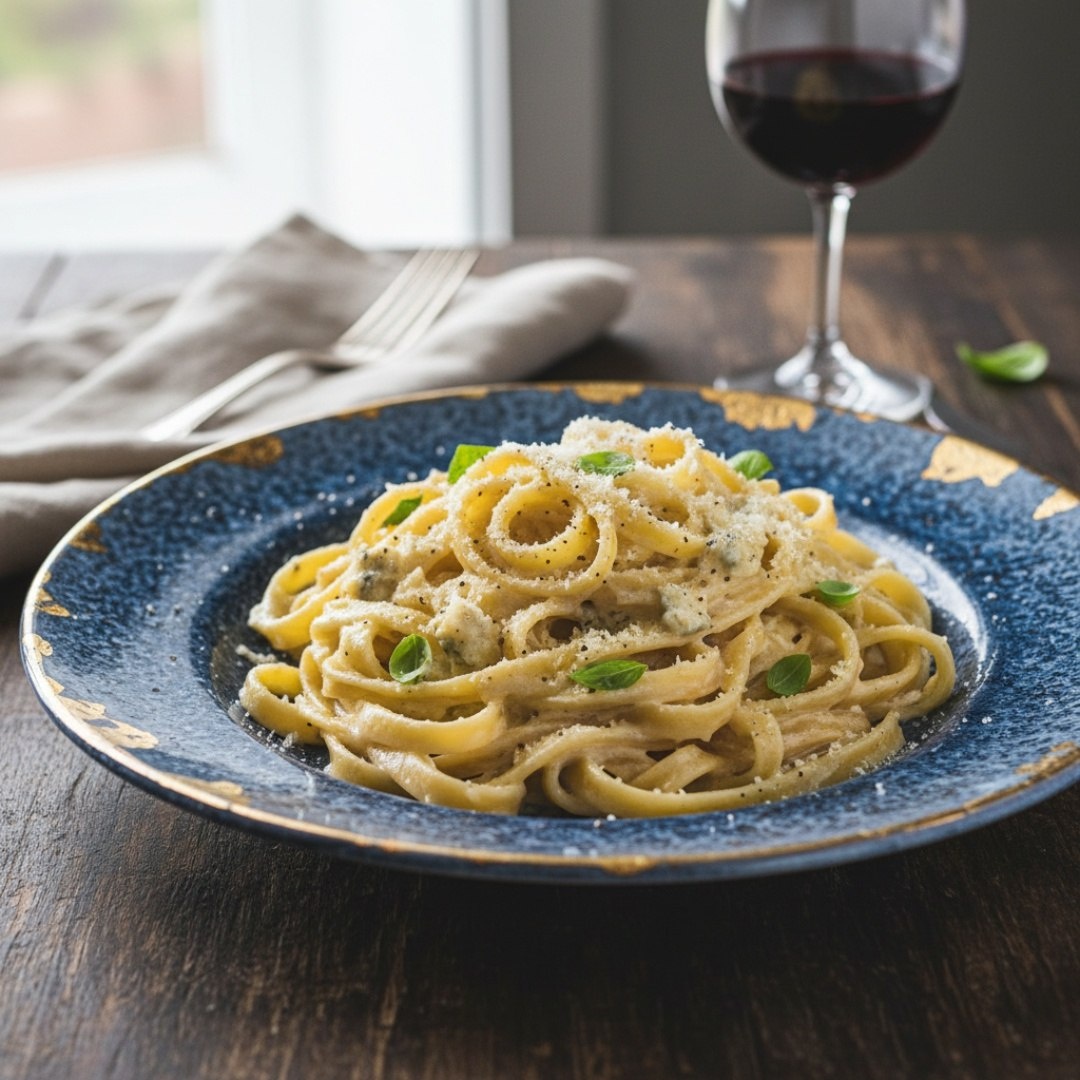 Сливочная паста "4 сыра" Ингредиенты ⤵️ 🔸 Феттучини – 250 г 🔸 Сыр пармезан – 50 г 🔸 Сыр горгонзола – 50 г 🔸 Сыр моцарелла – 50 г 🔸 Сыр рикотта – 50 г 🔸 Сливки 33% – 200 мл 🔸 Чеснок – 2 зубчика 🔸 Сливочное масло – 50 г 🔸 Мускатный орех – 1 щепотка 🔸 Соль, перец – 1 щепотка 🔸 Петрушка - 1 пучок Приготовление🧀 1. Пасту отварить в подсоленной воде до состояния аль денте. 2. Чеснок измельчить, обжарить на сливочном масле 1 минуту. 3. Влить сливки, добавить мускатный орех. Довести до кипения. 4. Добавить натертые сыры (кроме рикотты), готовить на медленном огне до полного растворения. 5. Добавить рикотту, аккуратно перемешать. 6. Смешать пасту с сырным соусом, прогреть 2 минуты. 7. Подавать с черным перцем и петрушкой. Рецепт дня #сливочная_паста #феттучини #4_сыра #пармезан #горгонзола #моцарелла #рикотта #сливки #паста #ужин