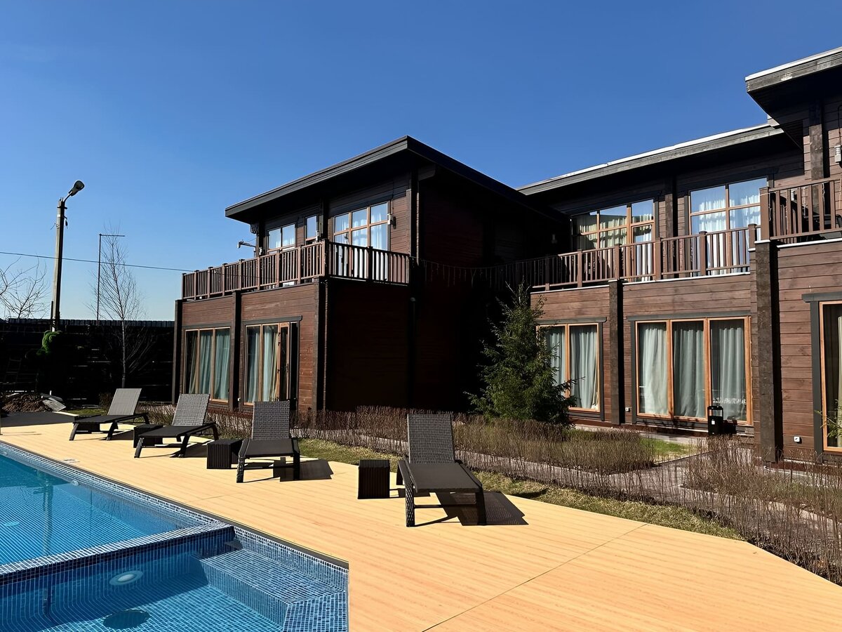 В целом получились раздельные коттеджи премиум-класса, предназначенные для посуточной аренды, а так же проживания до нескольких недель. Проведение корпоративов, праздничных мероприятий. В гостевом доме со всеми удобствами и пользованием сервисами можно при желании отпуск, либо целое лето провести.