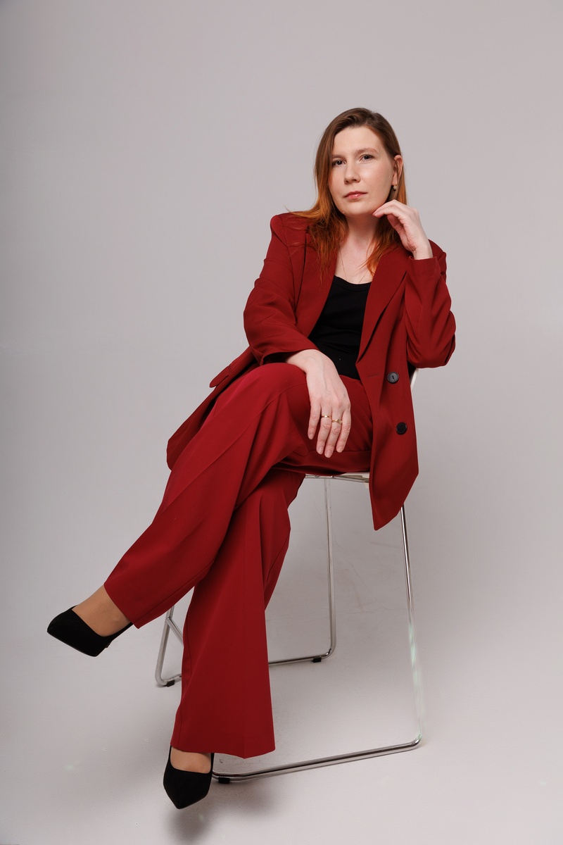 В этот раз делали тесты. Я знаю, что в идеале их снимают в базовой одежде, лучше в джинсах и майке. Но я в таком виде пока чувствую себя скованно. Поэтому мы решили отснять в костюме. И пока шла фотосессия, поняла еще одну вещь. В теории и на занятиях оно всё выглядит просто. Но когда доходит дело до самой съемки, начинается легкая паника. Потому что надо подумать как встать, не забыть про лицо, про руки. А еще и правильно повертеться перед камерой. И помнить, в моем случае, про пиджак. Про него я местами благополучно забыла.