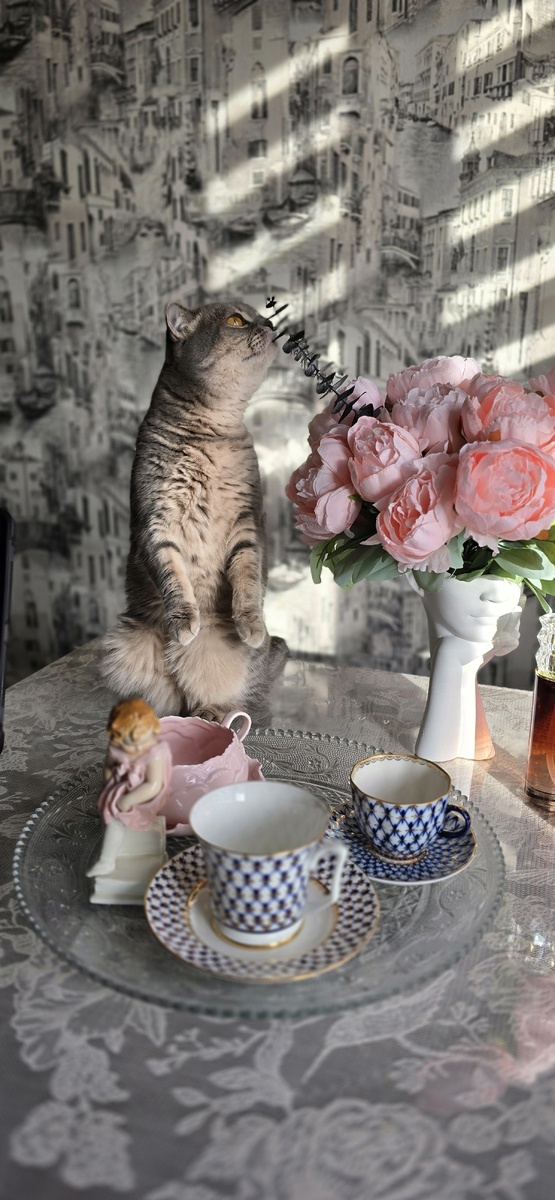 Она достаточно увесистая для своего размера, если взять ее в руки, но при этом этого веса при взгляде на изделие не ощущается. Визуально кажется легкой и снова таки создаётся ощущение, что может перевернутся, на самом же деле даже с букетом внутри она прекрасно стоит на столе, если даже задеть случайно, она не переворачивается, мои коты проверяют устойчивость регулярно🤣👌.