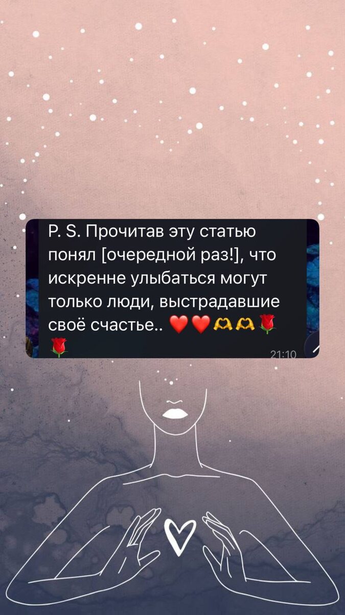 Иногда случается так, что в поле появляется какая-то тема для канала и мне хочется раскрыть ее глубже. Но она настолько многогранна, что я даже не знаю с какой стороны к ней подступиться! То ли со стороны психологии, то ли с позиции Арканов, то ли с разборов на примере фильмов или книг…. И тем не менее я решила просто начать, а там как пойдет! Тема, которую мне хотелось бы поднять - это Культ страданий! Триггером для обсуждения стал один комментарий (фото). И может быть я бы не стала развивать эту тему, если бы она не была столь распространена. 😢К сожалению (да-да, именно к сожалению), идеей о том, что счастье нужно выстрадать пронизана наша культура, религия и неследие предков, чья жизнь проходила в тяжелых бытовых и психологических условиях. И несмотря на то, что мир очень изменился, позитивная (и не только) психология прочно вошла в нашу жизнь, культ страданий буквально встроен по умолчанию в психику очень многих людей. Как будто на генетическом уровне. В частности - эта