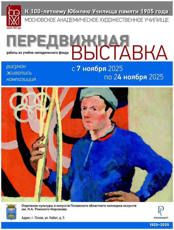Передвижная учебно-методическая выставка работ студентов старейшего художественного учебного заведения России, Московского художественного училища памяти 1905 года, откроется в Псковском областном колледже искусств имени Н. А. Римского-Корсакова 7 ноября. Об этом «МК в Пскове» сообщили в колледже. В этом году Московское художественное училище, выпустившее и воспитавшее сотни выдающихся мастеров искусства, отмечает 100-летний юбилей. В честь знаменательного события сотрудники училища открывают уникальную передвижную экспозицию из работ, раскрывающих все основные учебные программы и дисциплины именитого заведения с 1950-х до 2024 года. Училище всегда опиралось и опирается на позиции русской реалистической школы изобразительного искусства. Потому во все времена общим для работ художников выступает уважение к конструктивному, но средовому рисунку, сдержанная палитра цветов, живость письма, а также внимание к человеку и жизни. Отличаются почерки преподавателей и поиски творцов своего времен
