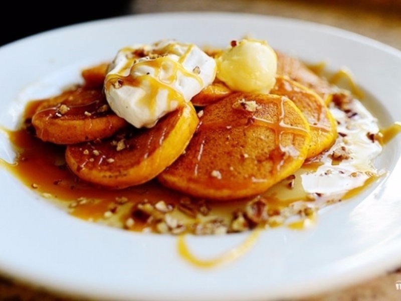 Ингредиенты: Тертая тыква 1 стакан Куриные яйца 2 шт. Мука цельнозерновая (либо молотая овсянка) 120-150 г Молоко обезжиренное 250 мл Сода гашеная 1/3 ч. л Какао 1 ст. л. Оливковое масло Соль, стевия по вкусу Приготовление: 1. Тыква должна быть сладкой, сочной и яркого оранжевого цвета. Чтобы блины были нежнее и вкуснее, лучше натирать тыкву на мелкой терке. Вареная (печеная, обработанная паром) тыква не имеет ярко выраженного вкуса и цвета, который присущ сырому продукту. 2. Выкладываете тертую тыкву в миску, разбиваете яйца, добавляете стевию, соль, соду. 3. Вливаете молоко и каплю оливкового масла. 4. Добавляете муку. Замешиваете блинное тесто – оно должно быть чуть гуще, чем для обычных блинчиков. Тщательно размешивайте комочки – из-за тыквы это несколько сложнее. 5. Несколько столовых ложек теста переливаете в небольшую пиалу. Смешиваете с какао. Если получится очень густая масса, разбавьте небольшим количеством молока. Это будут «жирафьи пятна». 6. Дайте тесту постоять-отдох