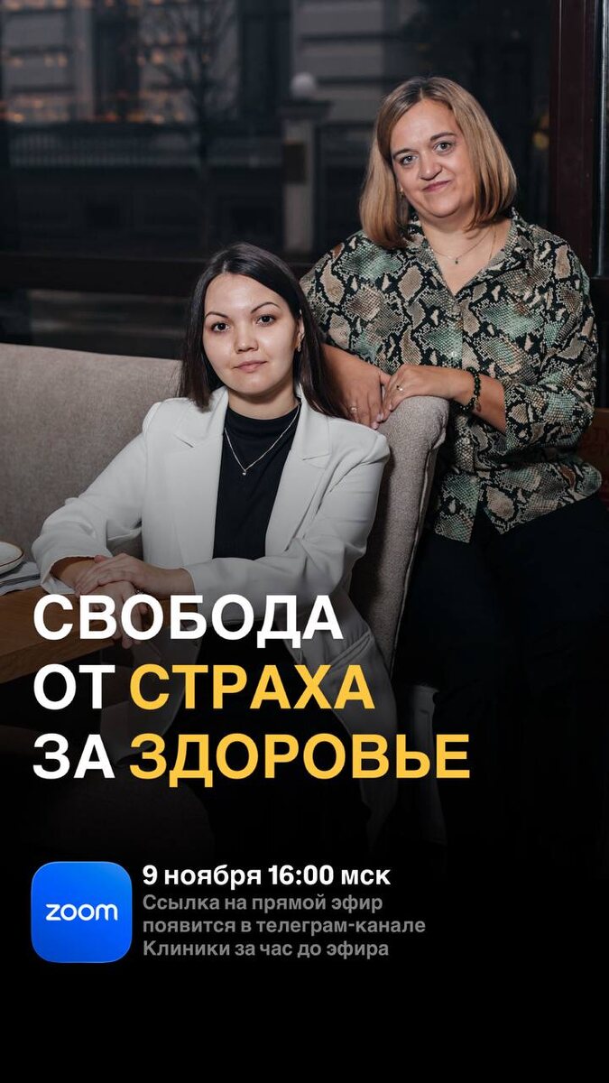 СВОБОДА ОТ СТРАХА ЗА ЗДОРОВЬЕ 9 ноября, 16:00 МСК • бесплатно О чём поговорим • Что такое ипохондрия и почему не стоит думать «повышенное сердцебиение = инфаркт» — это ловушка мышления • Нормальные ощущения vs «красные флажки» (где реально стоит провериться) • Как ломается цикл «мысль — тревога — сканирование — снова тревога» • План преодоления ипохондрии • Ответы на ваши вопросы Кому полезно • Тем, кто боится серьёзных болезней и часто «сканирует» тело • Тем, кто избегает врачей или, наоборот, ходит «на всякий случай» Что получите • Понимание, почему возникает тревога за здоровье и не проходит годами • Пошаговый план, чтобы меньше гуглить и меньше сканировать организм Как подключиться 1) Установите Zoom заранее (это бесплатно, занимает 2 минуты) — так стабильнее, чем в Телеграм. 2) Ссылку на встречу опубликуем здесь в канале за 1 час до начала. 3) Включите уведомления канала 🔔 и поставьте напоминание. 4) Возьмите наушники, блокнот и воду. Ведущие Михеева Наталия Анатольевна — в