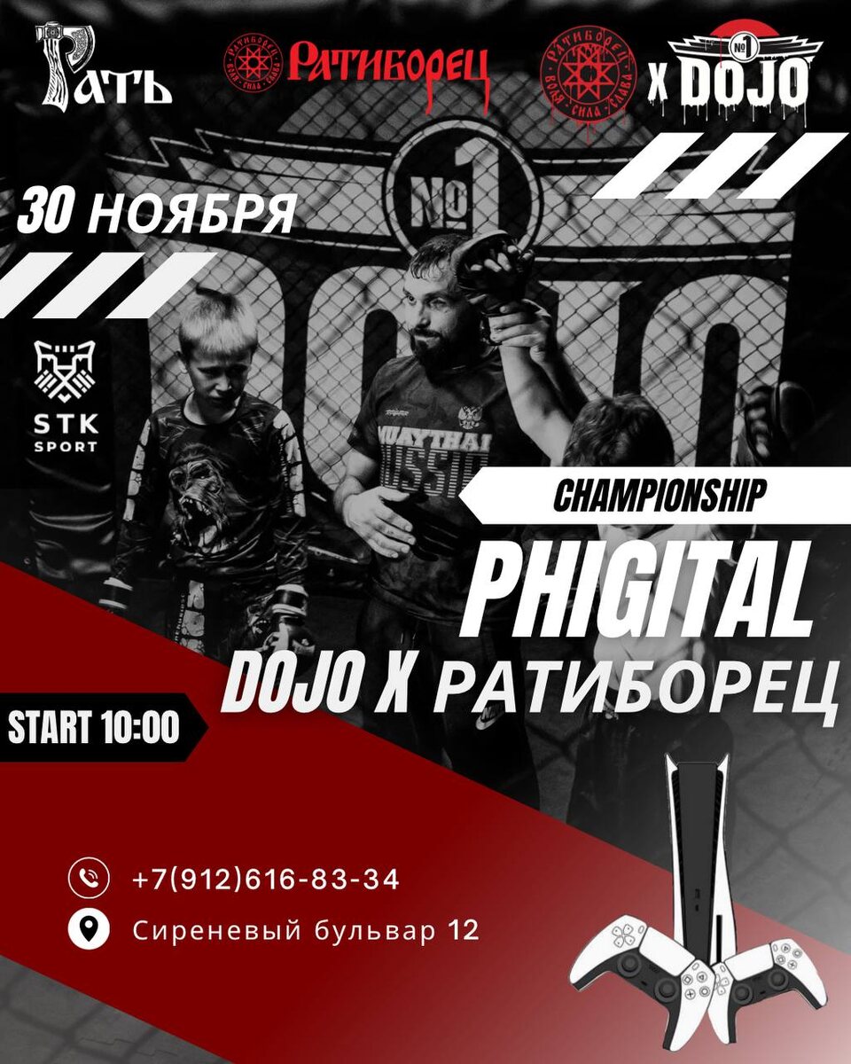 Друзья, готовьтесь к настоящему спортивному празднику!🔥 Мы с огромной радостью приглашаем вас стать частью CHAMPIONSHIP PHIGITAL 2! 🥊 Это событие, которое нельзя пропустить, и оно пройдет 30 ноября в уютном клубе "Ратиборец" по адресу: Сиреневый бульвар, 12. Начало жарких сражений запланировано на 10:00. 💪 Вас ждут ИГРА НА PlayStation, захватывающие поединки по: Боксу Муай Тай ММА Вольной борьбе Хотите испытать себя и показать, на что способны? Присоединяйтесь к нам в любой из этих дисциплин! Чтобы подать заявку на участие, просто напишите нам в WhatsApp или Telegram по номеру: +79126168334. Ждем вас!