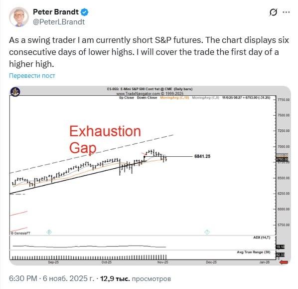 Как свинг-трейдер я сейчас в шорте по фьючерсам на S&P