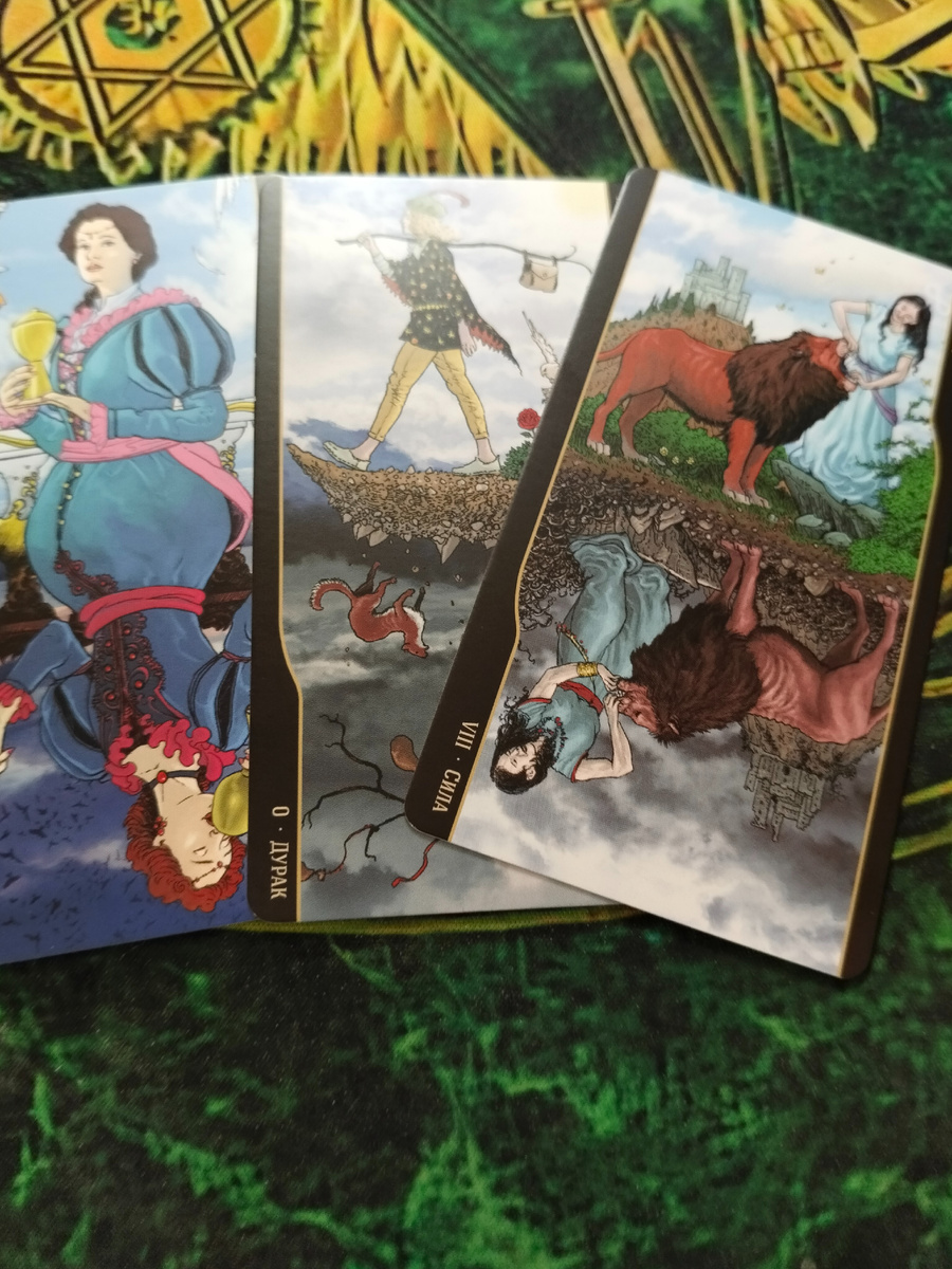 Встреча с чувственной или заботливой женщиной. Эта женщина может быть Вашей любимой женщиной, или Вашей матерью, или Вашей родственницей.Она будет проявлять заботу, утешать, помогать в решении проблем. Также карта Королева кубков в прямом значении несет известие о материнстве. Карта Дурак говорит о новизне в Вашей жизни, начало чего-то заново. Удивление. Карта Сила утверждает, что у Вас всё получится так, как Вы задумаете.