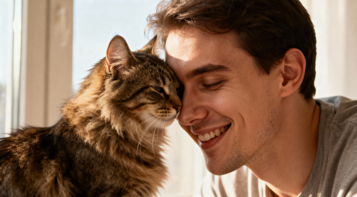 Ты всё ещё считаешь, что твой кот равнодушный? 😼 А вы знали, что даже самый «серьёзный» котик ежедневно признаётся вам в любви? Только делает это не словами — а особым, кошачьим языком... Знаты ли вы, как понять, что вас действительно обожают? Однажды я думал, что моя кошка просто пользуется мной как бесплатным обслуживающим персоналом… Пока не понял: она посылает мне секретные «любовные» сигналы, просто я их не замечал. Хотите узнать, какие? Ловите топ-7 самых неожиданных признаний в кошачьей любви! Когда ваша кошка подходит и трётся лбом о вашу руку, лицо или даже телефон — это не просто милая прихоть. В кошачьем мире это верх нежности! Она словно говорит: «Ты только мой. Не перепутаешь!» Моя кошка Ксюха каждое утро встречает меня бодалками. Это стало нашим особым ритуалом. Если ваш кот идёт к вам, выгибая хвост кверху, а на конце он чуть дрожит — поздравляю! Это типичное кошачье «я тебя люблю». Так коты приветствуют только самых близких. Заметьте: мимо чужих идут с опу