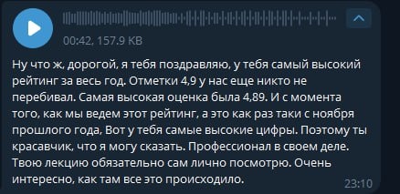 Очень плотная неделя, встречи, конференции, обучение, выступления, питчы. Переварю и отгружу инсайты. Сегодня отзыв прислал по последнему выступлению, приятно. ОТЧЁТ ПО ВЫСТУПЛЕНИЮ Дата: — 30.10.2025 Спикер: — Денис Логинов Оценки Средняя оценка: — 4,93 / 5 Наивысшая категория: Актуальность темы — 5 Низшая категория: Ясность изложенного, Работа с залом, Харизма — 4,89 🟢 Позитивное Общая оценка: «Все отлично», «все круто», «в восторге», «все было классно». Спикер: Денис получил высокую оценку — «замечательная лекция о делегировании», «тема зашла», «спикер топ». Подача: Материал полезный, понятный, вдохновляющий. Замечания и предложения Организация и техника Не отвлекать спикеров на технические моменты. Улучшить климат в зале: «душно», «нужно проветривать». Добавить короткую разминку (5 минут) перед началом. Материалы и структура лекции Слайды сделать более информативными, некоторые объединить. Не листать презентацию слишком быстро. В начале собрали вопросы, но в конце н