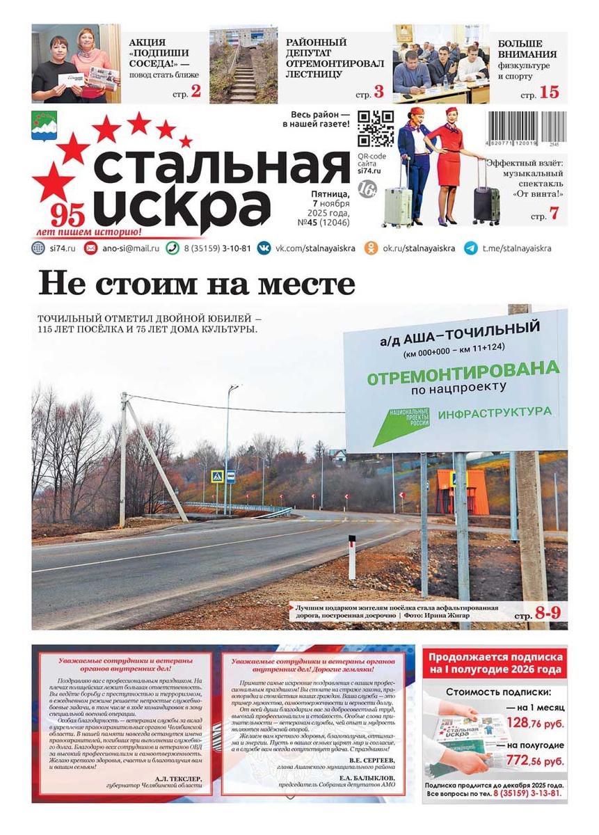 🍂Свежий номер районного еженедельника «Стальная искра» придёт к своим читателям в пятницу, 7 ноября. В этот день в России отмечается День Октябрьской революции 1917 года, когда в Петрограде началось вооружённое восстание, в результате которого власть перешла к Советам рабочих и солдатских депутатов. Наша газета, верная своим традициям, рассказывает о тех, чьими руками создавалась история тогда и создаётся история сегодня. Не пропустите свежий номер «Стальнушки»! 📌 День Октябрьской революции в истории Ашинского района — на стр. 2 📌 Нововведения в сфере информационной безопасности, контроле за оборотом лекарств и соцобслуживании — на стр. 4 📌 Специалист по охране труда ПАО «АМЗ» Максим Климаков — победитель конкурса «Лучший по профессии» — откройте стр. 7 📌 Известный музыкант и видеорежиссёр Евгений Курицын поздравил «Стальнушку» с юбилеем — читайте на стр. 10