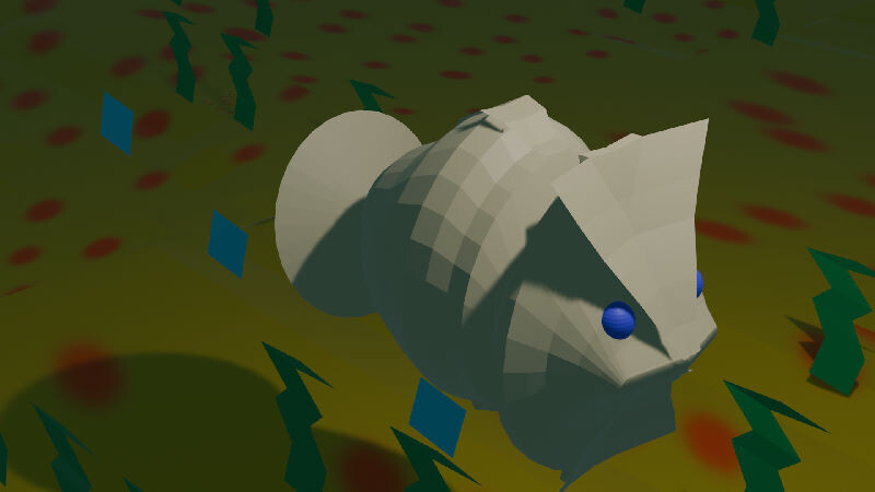 Трехмерная сцена на сегодня по мотивам рыбы. Странной рыбы. Смотри какие ням-нямки. Такие квадратики. Они вкусные! Рыбка их очень любит кушать! А еще тут растут водоросли. Они очень полезны для мозга! Рыбка умненькая! Плавает в водичке! И веселится! Вот это как вид сбоку. Это такая аркада как бы. Типа Раймана. Добрая игра. Могла бы быть как идея. А так рыбка плавает. Это океан на какой-то планете. Там миллионы лет океан. И свои водоросли. Свои рыбы. Такие странные. Но это тоже рыбы. И они там умные. Плавают. Океан огромный. Кажется он покрывает всю планету. И не такой глубокий. Но рыбы все это точно не знают. Они никогда не видели поверхности. Они ведь рыбы! И это нормально! Тут можно плавать и кушать вкусные квадратики. Они появляются сами по себе. Рыбы не знают откуда они берутся. Кроме рыб и водорослей тут больше никого нету. И еще песочек. Тут тихо. Океан такой огромный что не каждый день тут кого-то встретишь. Рыбы плавают сами по себе! Миллионы лет! Дима Линк делает ретро видеоиг