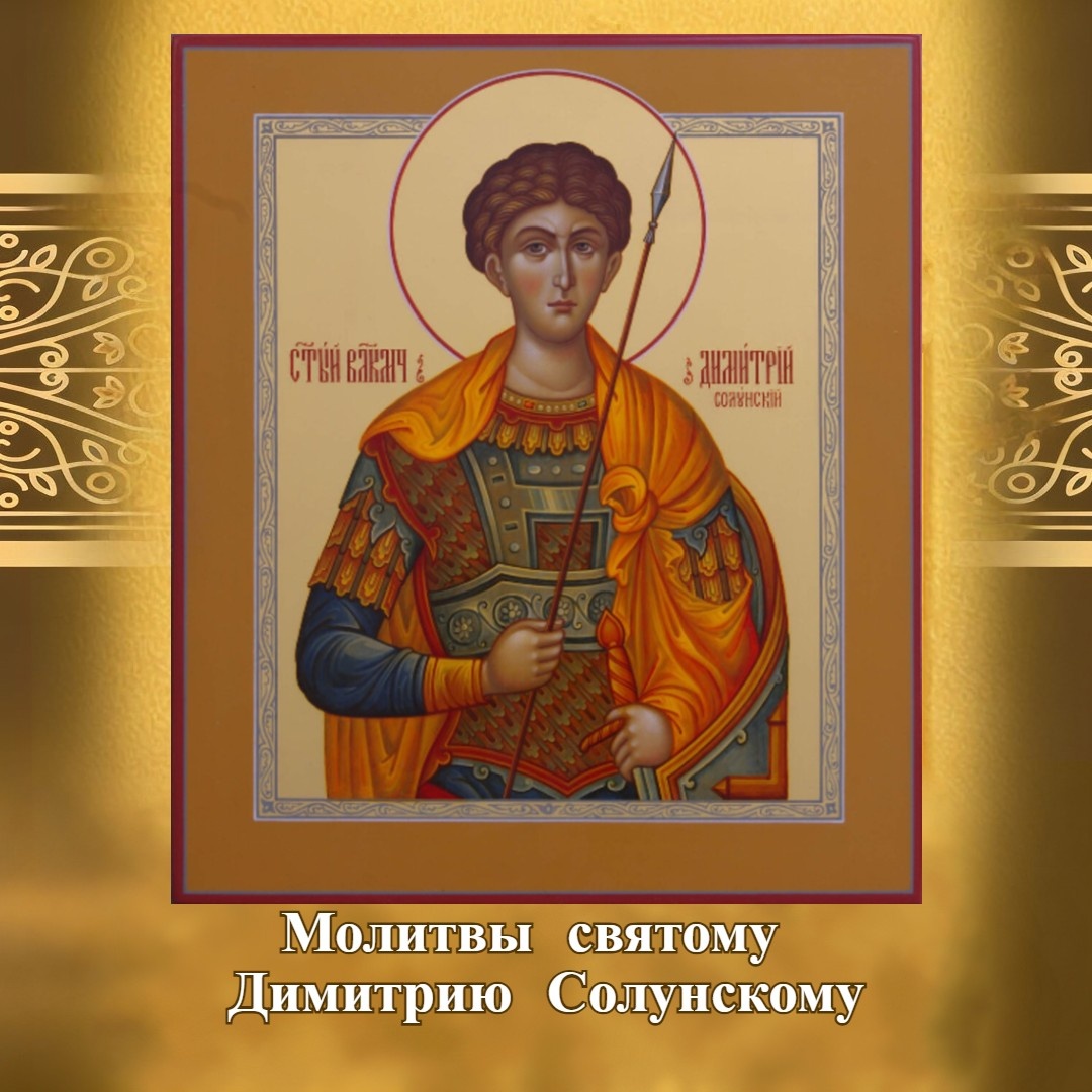 Мои дорогие, завтра день памяти святого покровителя воинов-христиан – великомученика Димитрия Солунского. Сохраните для себя эти молитвы и обязательно помолитесь Божьему угоднику за тех, кто сейчас исполняет свой воинский долг, испытывает тяготы болезней, жизненных испытаний, переживает скорби. Тропарь, глас 3: Вели́ка обpе́те в беда́х/ тя побо́pника вселе́нная, стpастоте́pпче,/ язы́ки побежда́юща./ Я́коже у́бо Ли́еву низложи́л еси гоpды́ню,/ и на по́двиг деpзнове́нна сотвоpи́в Не́стоpа,/ та́ко, свя́те Дими́тpие,/ Хpисту́ Бо́гу моли́ся// даpова́ти нам ве́лию ми́лость. Кондак, глас 2: Крове́й твои́х струя́ми, Дими́трие,/ Це́рковь Бог обагри́,/ да́вый тебе́ кре́пость непобеди́мую,/ и соблюда́я град твой невреди́м:// того́ бо еси́ утвержде́ние. Молитва 1: Святы́й и сла́вный великому́чениче Христо́в Дими́трие, ско́рый помо́щниче и те́плый засту́пниче с ве́рою притека́ющих к тебе́! Предстоя́ со дерзнове́нием Небе́сному Царю́, испроси́ у Него́ проще́ние согреше́ний на́ших, и о е́же изба́вит