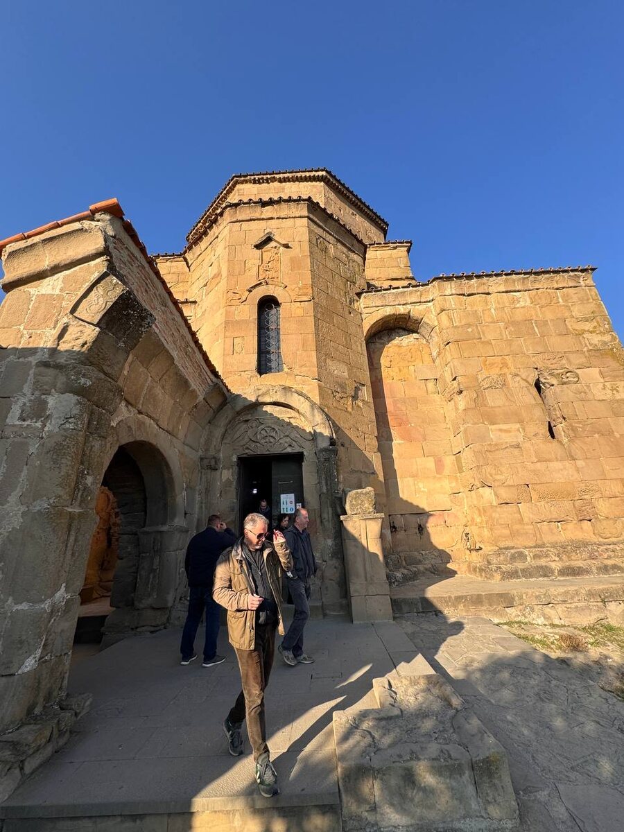 🇬🇪 Джвари- крест . Храм на вершине горы с прекрасным видом на слияние рек Арагви и Куры. Джва́ри — грузинский монастырь и храм VII века, один из шедевров архитектуры по совершенству архитектурных форм и первый в Грузии памятник Всемирного наследия. Джвари (груз. ჯვარი, досл. «крест») расположен на вершине горы у слияния Куры и Арагви близ Мцхеты — там, где, согласно историческим источникам («Обращение Грузии», «Жизнь картлийских царей»), воздвигла крест святая равноапостольная Нина. По преданию, именно в этом красивом месте Михаил Лермонтов был вдохновлен написанием Мцыри. Тут мы помолились, пропели Кондак Кресту и Матушка почитала все поданные имена. #грузия #Джва́ри
