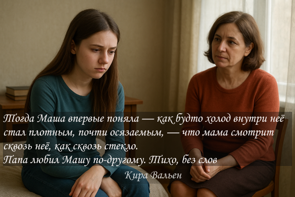 Тогда Маша впервые поняла — как будто холод внутри неё стал плотным, почти осязаемым, — что мама смотрит сквозь неё, как сквозь стекло.