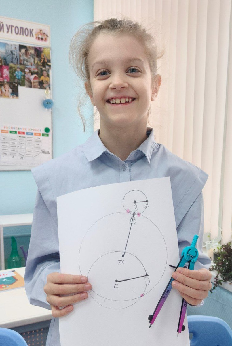 От точки до круга: наши первые шаги в геометрии 💫 2Б класс на уроке математики погрузился в удивительный мир геометрии и покорили одну из её важных фигур — окружность. ✏️На уроке ребята не просто слушали, а были настоящими исследователями: 🔹Узнали, что такое центр окружности, радиус и как они связаны. 🔹Поняли, что радиус — это ключ к построению идеального круга. 🔹Научились уверенно пользоваться циркулем (конечно, не без первых казусов 😄). ☺️Было очень трогательно наблюдать, как сосредоточенно каждый выводит свою первую окружность. Для детей это не просто линия на бумаге, а настоящее открытие и маленькая победа! ❔Спросите у наших юных математиков, что такое «радиус» — уверены, вы получите подробный и восторженный ответ! 📐 Фотографии и игра в комментариях ⬇️