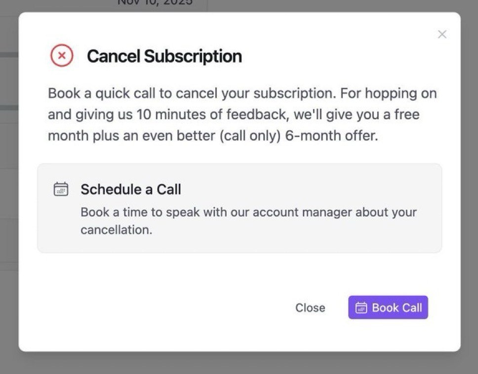 Мы думали, что отписываться от сервисов «там, где оформляли» — это верх цинизма. Но нет — снизу постучались. Американский сервис ввёл новый уровень расставания с клиентом: чтобы отменить подписку, нужно созвониться с менеджером. Да-да, не кнопка «отписаться», а: - Выбрать свободный слот в расписании - Выделить 10 минут времени - Лично объяснить, почему вы уходите Ждём, когда следующий сервис введёт обязательное эссе «Почему я хочу от вас отписаться». Если не убедили, подписка остается.