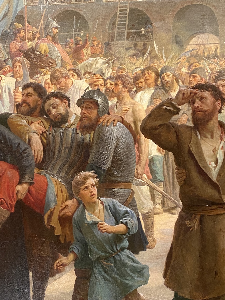Иногда маленькая деталь на картине может рассказать о большой исторической драме. Рассматривая полотно Василия Верещагина «Осада Троице-Сергиевой лавры», я заметила, что защитники монастыря крестятся тремя перстами. Ну и что? Однако, осада лавры происходила в 1608–1610 годах, а креститься тремя перстами (как шутили староверы, «щепотью») на Руси стали только после реформ патриарха Никона с 1653 года. Вот и получается, что одно полотно показывает нам несколько исторических событий: Смутное время и религиозные противоречия XIX века. Эта картина была написана в 1891 году по заказу императора Александра III. Возможно, Верещагин сознательно изобразил троеперстие, чтобы его работа не вызывала вопросов у властей и не ассоциировалась с «раскольниками». А возможно, художнику просто не позволили быть до конца исторически точным в этом идеологически тонком моменте. Кстати, для всех, кто ждёт экскурсию «Москва старообрядческая», — остались последние штрихи! Остановить нас может только погода. След