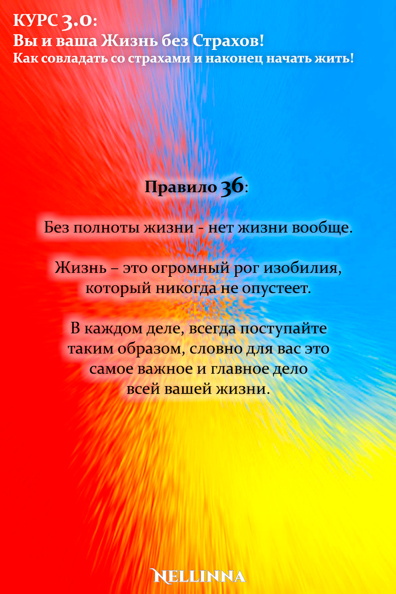 Продолжение - Принцип 36: Создайте собственный список Полноты Жизни, когда таблица окажется заполненной, выберите одну из строчек и поработайте над ней детальнее, а когда в вашей голове сложится единая картина, возьмите чистый лист бумаги и запишите все, что вообразили, не упуская из виду ни одной детали и принимайтесь за скорейшую ее реализацию, параллельно представляя, как бы вы хотели видеть каждый элемент своей жизни, как будете поступать, как будет выглядеть, каким будем общение с разными людьми. Чтобы не пропустить следующую публикацию – Подписывайтесь! И делитесь полезной и бесплатной информацией! #курс #тренинг #обучение #практикум