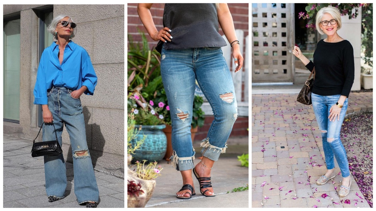 Рваные колени, бахрома и «варёный» эффект смотрятся модно на подростках, но на женщине после шестидесяти такие детали выглядят чужеродно. Они придают образу небрежность и будто стараются сделать его моложе любой ценой, а на деле только добавляют возраст.
