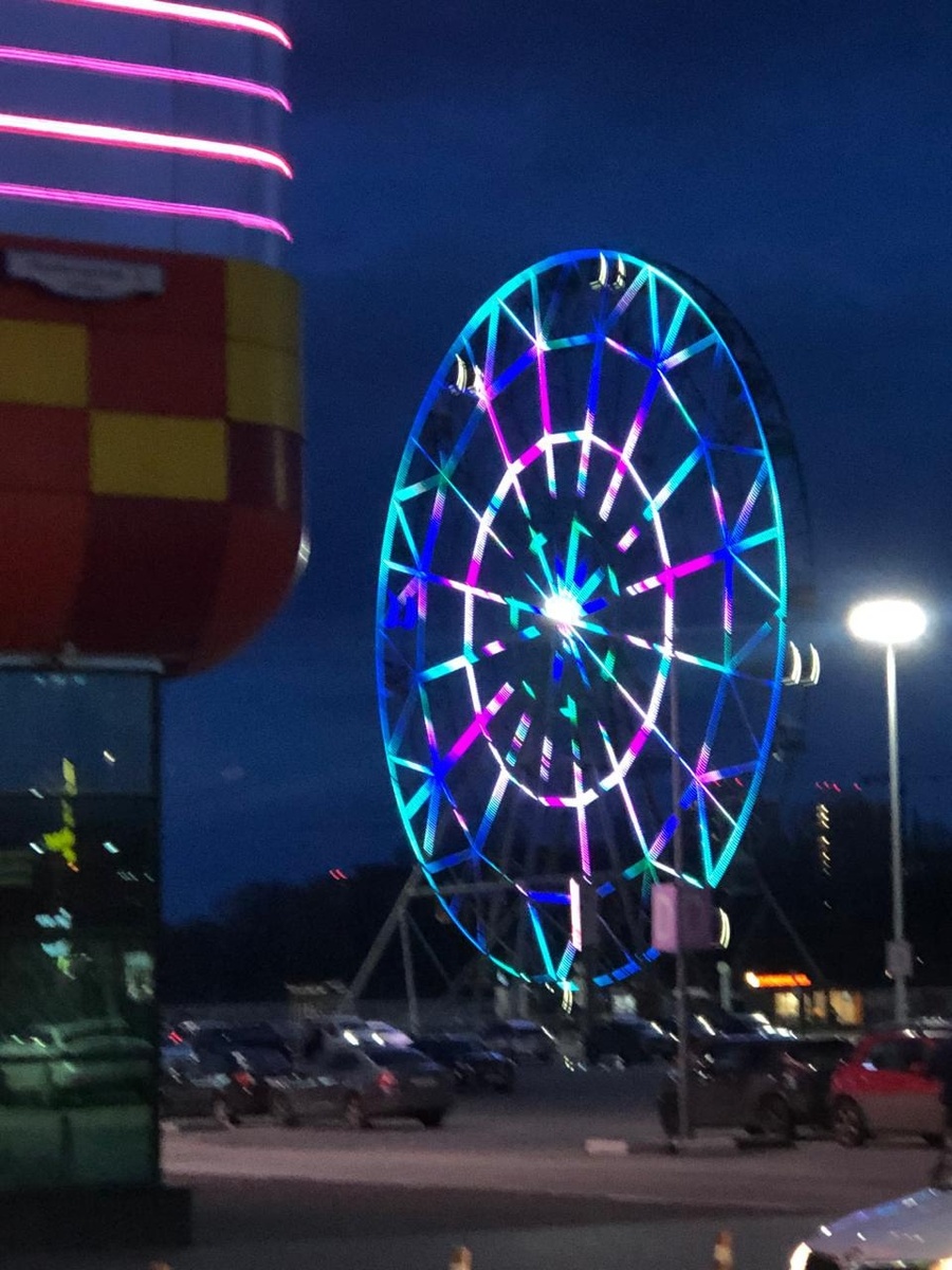 Если я хочу по-настоящему узнать город, почувствовать его, то обязательно поднимаюсь на смотровые площадки и катаюсь на колесе обозрения, если оно есть. В Туле оно имеется. Современное (если я не ошибаюсь, ему 5 - 6 лет) и довольно высокое - 55 метров (пусть и не входит в десятку самых высоких в России, но близко :)). Особо отмечу то, что колесо обозрения работает без выходных круглый год (в кабинках есть кондиционеры и обогреватели) и открыто с 10 до 22 часов. Это очень удобно: можно днём ходить по историческим местам, а потом увидеть закат с колеса обозрения. Колесо обозрения находится не в центре, там рядом только ТРЦ "Макси" и берег реки Упы. Но и в этом есть плюс: с высоты можно увидеть город во всём его разнообразии, от современности до старины. К сожалению, у меня произошли проблемы с переносом фото со старого телефона, и пропало много интересных фотографий из Тулы и Воронежа :(. Так что покажу то, что сохранилось + фото вип-кабинки с официального сайта. А оформление обычных ка