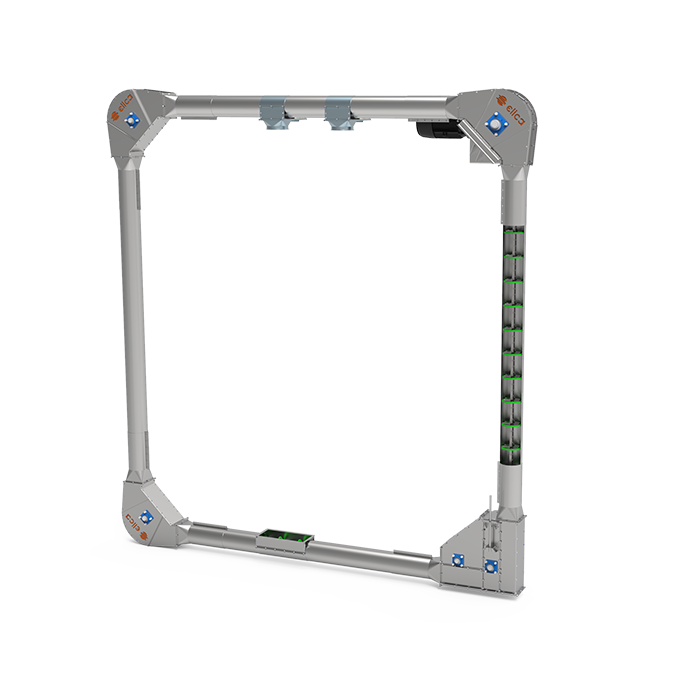 Заменяет два цепных транспортера и одну норию, выполняя сразу функции приема, транспортировки и загрузки семян. Благодаря этому снижается энергопотребление и количество обслуживаемого оборудования. Конструкция позволяет подавать сырье на несколько зернорушек и ситовых сепараторов одновременно.