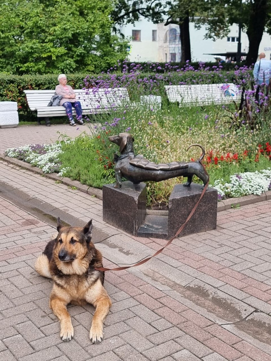 🐕🦺 Памятник таксе в Зеленогорске Скульптура-скамейка "Такса" появилась в Зеленогорске в 2002 году. Автор - скульптор Арсен Альбертович Аветисян. На шее таксы повязан галстук-бабочка, а под хвостом находится театральная маска. Знаете, почему? В 1912 году в Терийоках (Зеленогорск) Всеволод Мейерхольд организовал "Товарищество актеров, писателей, музыкантов, художников". А у самого Мейерхольда была такса, которая сопровождала его на прогулках. Вот эту собачку и изобразил Аветисян, назвав скульптуру "Дорога на карнавал". Через три года спустя, в День Города, рядом с памятником городские власти первый раз организовали сбор владельцев такс с их питомцами. С тех пор это стало традицией. Приезжают и любители этой породы со своими питомцами из Петербурга — сборище такс и хозяев получается очень забавным. Праздничная колонна всегда шествует по главной улице к площади, здесь устраивается парад такс, в котором они соревнуются в разных номинациях: «Самая длинная такса», «Самая пятнистая»,