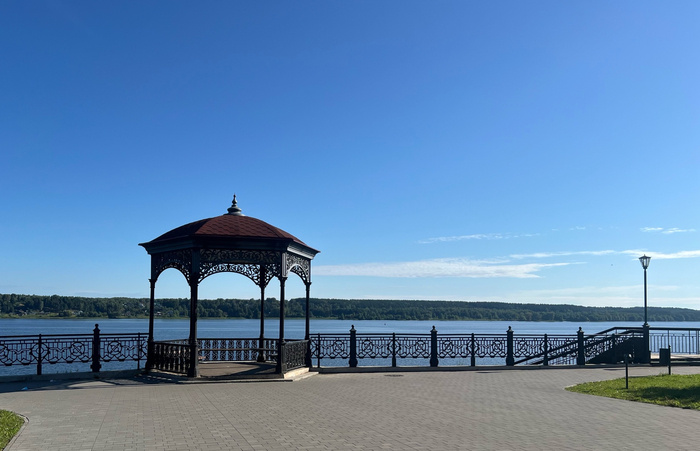 Вечером мы вдвоем прогулялись в центр, поглазели на стрелку и Волжский бульвар. От тишины окраин здесь не осталось и следа – вовсю гуляла молодежь, которая первой почувствовала надвигающиеся трехдневные выходные. Ребята оккупировали лавочки, перголы и беседки, что стояли на стрелке Кинешемки. В общем, тихий и патриархальный – это не совсем про Кинешму.