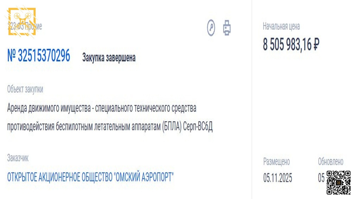 👉Омский аэропорт в 2024 году арендует защиту от БПЛА у "дочки" за 8, 5 млн