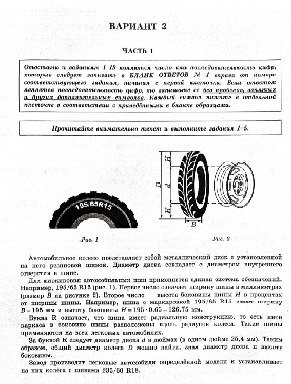 В тексте задания нам дана маркировка колеса, с которой автомобили выходят с завода: 235/60 R18. Формула диаметра колеса: D=2H + d. Маленькая d - это третье число в маркировке, но оно нам дано в дюймах. В тексте задания (4 абзац) нам сказали, что 1 дюйм = 25,4 мм, значит, что бы найти d, нам нужно просто третье число из маркировки умножить на 25,4 (всегда!).