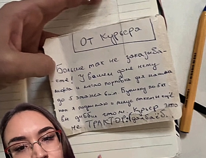 Но своего коллегу я прекрасно понимаю, хоть и не полностью поддерживаю. Почему не полностью? Потому что клиенты бывают как дитя малое - не соображает и даже не задумывается о том, что эти бутылки появляются перед его дверью не сами по себе. А какой может быть спрос с детей? Он просто захотел и не думая заказал... Конечно же, получив подобную записку, клиент первым делом не задумается: "А ведь действительно, я мог бы заказать и две бутылки, потому что сам бы точно никогда бы не потащил сразу шесть. Тем более у меня тут негде поставить автомобиль. Да еще и лифта нет... Какой же я несообразительный!" Но конечно так он не подумает. Первым делом - жалоба! "Меня оскорбили! Смотрите все, что этот смерд себе позволяет! Я уважаемый клиент, между прочим!!!" И курьер, действительно, принимая заказ, даже не представляет что будет в этом заказе. Поэтому нет смысла его упрекать: "Назвался груздем - полезай в кузов". Знал бы - конечно бы отказался от такого заказа. И все бы от него отказались! И тог