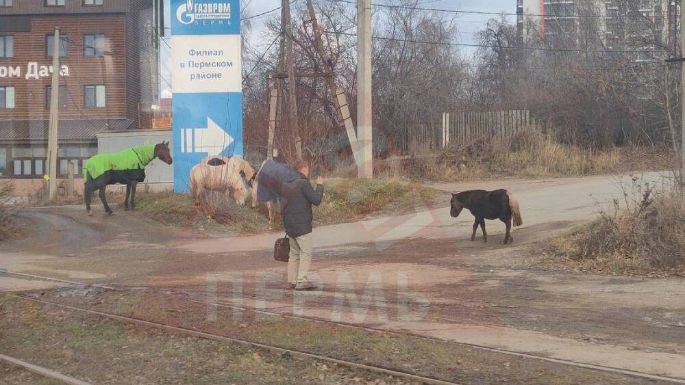 Около торгового центра «Планета» в Перми очевидцы заметили стадо лошадей и пони, которые перебежали дорогу и продолжили движение по тротуару. На части животных были попоны, что указывает на наличие владельца. В комментариях пользователи напомнили, что ранее на месте торгового центра находился ипподром, закрытый в 2014 году. Некоторые шутят, что животные будто бы искали прежнее место. Фото: группа ВК "ЧП ДТП Пермь"