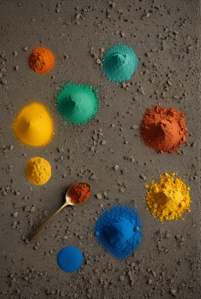 Сухой краситель – это самый популярный и доступный вид. Он представляет собой тонкодисперсный порошок. Основой палитры служит железоокисный пигмент, который является разновидностью оксида железа. Он дает стойкие красные, желтые, коричневые и черные оттенки. Для получения белого цвета и пастельных тонов незаменим диоксид титана. Важнейшие свойства, которыми должен обладать качественный сухой краситель, – это максимальная светостойкость (устойчивость к УФ-излучению) и абсолютная щелочестойкость. Последнее критически важно, так как цементная среда является агрессивной щелочной, и неустойчивый пигмент в ней просто "сгорит", потеряв цвет.