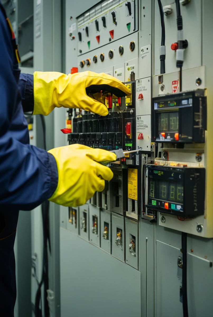 Техника безопасности при работе в электроустановках: проверка исправности‚ диэлектрические перчатки и другие СИЗ (средства защиты) на ЛЭП и в распределительном устройстве