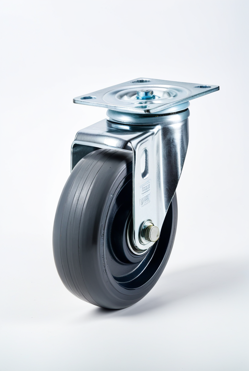 - Резина: Обеспечивает тихий ход. Черная резина — стандартный вариант. Серая резина — это бесшумные колеса, которые не оставляют следов, важно для чистых помещений.