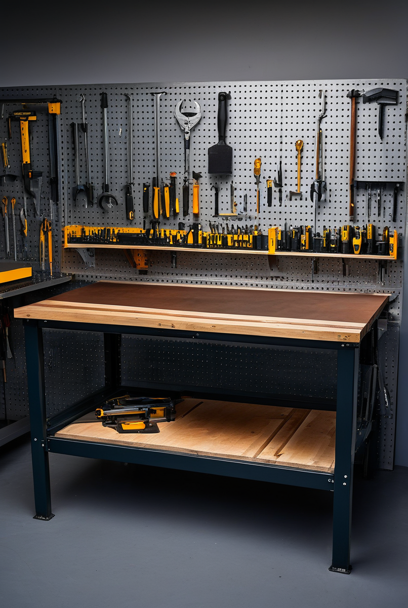Выбор зависит от преобладающих задач. Если это столярные работы, то классический верстак столярный со столешницей из массива дерева будет идеален. Для работы с металлом, где важна прочность, необходим верстак слесарный с металлической поверхностью. Оптимальный вариант для гаража, где выполняются разные монтажные задачи, — это универсальный рабочий стол. Его основа — металлический каркас из профильной трубы, а столешница из толстой фанеры, покрытая листом металла. Такое рабочее место выдержит высокую максимальную нагрузку.