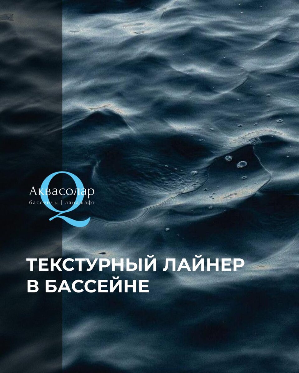 Лайнер (пленка ПВХ) для облицовки. Их десятки. Но основные и безошибочные — это лайнеры с 3д-текстурой натуральных цветов. Посмотрите, как цвет воды зависит от цвета облицовочного материала. ◽️Если бассейн облицован базальтовым лайнером – то вода насыщенно-синяя. ◽️Темно-серый цвет пленки — вода изумрудная. ◽️Серый лайнер – голубая вода. ◽️А вот белый лайнер в чаше бассейна даст очень яркий голубой цвет воды. Мы называем такой случай «поле безопасного выбора» — любой из этих лайнеров выглядит благородно, натурально и эстетически верно.