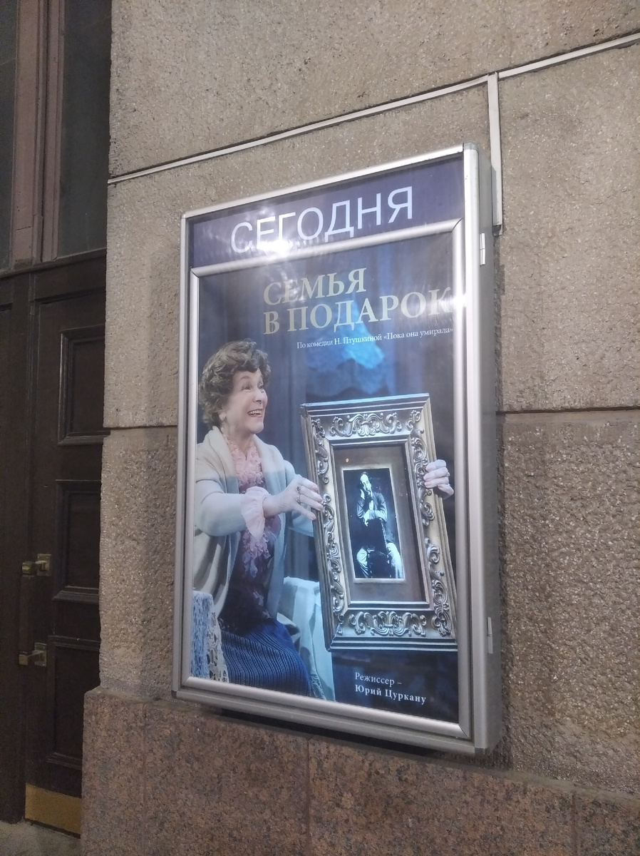 Спектакль "Семья в подарок". Проходил в театре "Балтийский дом". Про здание, что в Александровском парке, я уже узнавала: Сегодня продолжаю поиски новогоднего настроения и выбор мой пал на спектакль "Семья в подарок", т.к. он поставлен по пьесе Надежды Птушкиной "Пока она умирала", а именно по этой пьесе снят фильм, который я очень люблю и смотрю каждый год под Новый год - "Приходи на меня посмотреть" с потрясающими и любимыми актерами: Олегом Янковским, Екатериной Васильевой и Ириной Купченко❤️ Легкая комедийная пьеса Надежды Птушкиной, пропитанная детской верой в чудеса, теплом, домашним уютом предновогоднего вечера, мимо которой я не могла пройти☺️ Надеюсь театральная версия мне понравится так же, как и художественный фильм. Все начинается с того, что Татьяна, женщина среднего возраста, живёт со своей больной матерью Софьей Ивановной, которая последние десять лет не может ходить и очень переживает, что дочь осталась старой девой. За неделю до Нового года Софья Ивановна заявляет, чт