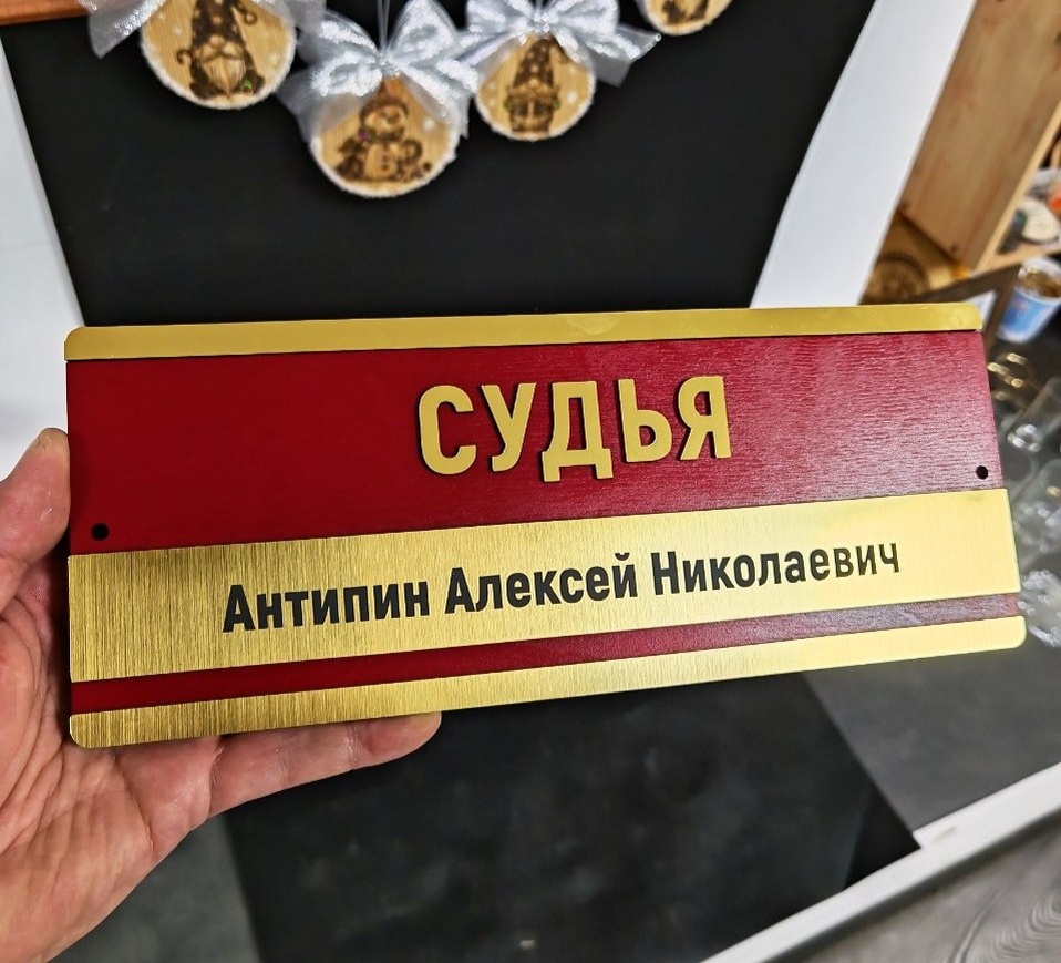 У нас бывают разные заказы👍 Сделали такие таблички на дверь кабинета, изготовлены из дерева и золотого пластика с гравировкой💥