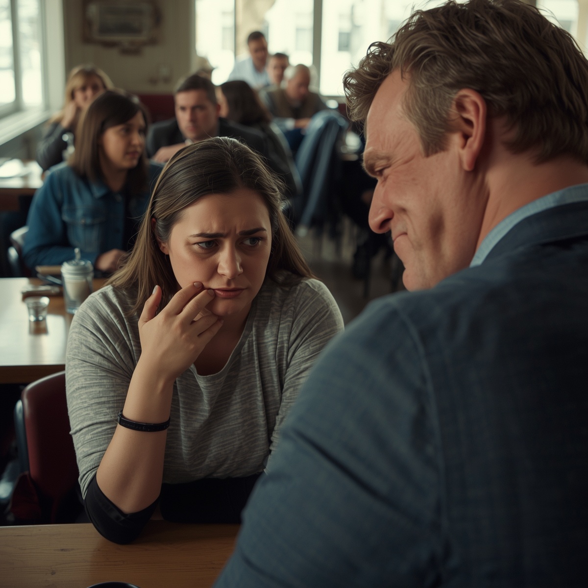 Маша замерла на полпути. Покраснела. Люди за соседними столиками обернулись. Кто-то усмехнулся.