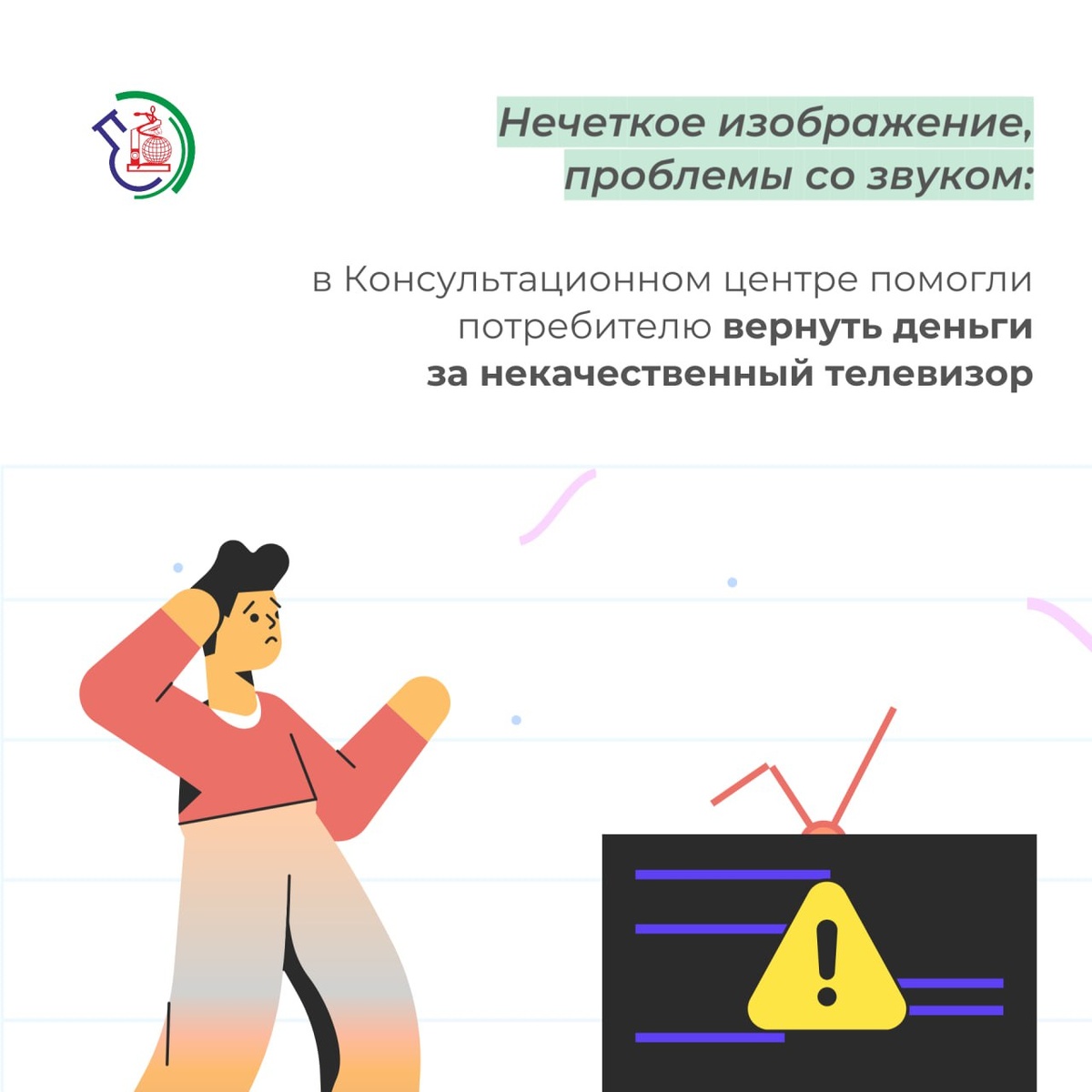 πΊ ΠΠ΅ΡΠ΅ΡΠΊΠΎΠ΅ ΠΈΠ·ΠΎΠ±ΡΠ°ΠΆΠ΅Π½ΠΈΠ΅, ΠΏΡΠΎΠ±Π»Π΅ΠΌΡ ΡΠΎ Π·Π²ΡΠΊΠΎΠΌ: Π² ΠΠΎΠ½ΡΡΠ»ΡΡΠ°ΡΠΈΠΎΠ½Π½ΠΎΠΌ ΡΠ΅Π½ΡΡΠ΅ ΠΏΠΎΠΌΠΎΠ³Π»ΠΈ ΠΏΠΎΡΡΠ΅Π±ΠΈΡΠ΅Π»Ρ Π²Π΅ΡΠ½ΡΡΡ Π΄Π΅Π½ΡΠ³ΠΈ Π·Π° Π½Π΅ΠΊΠ°ΡΠ΅ΡΡΠ²Π΅Π½Π½ΡΠΉ ΡΠ΅Π»Π΅Π²ΠΈΠ·ΠΎΡ
