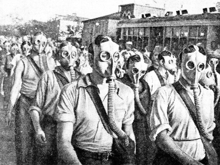 6 июня 1939 года тысяча горожан в противогазах прошла из центра до Заельцовского парка. Через два дня работники фабрики «Стандарт» после работы прошли в противогазах три километра. Те, кто не захотел идти, остались слушать лекцию о международном положении. В октябре того же 39-го года 12 новосибирских пожарных, одев противогазы, прошли бодрым шагом от Новосибирска до села Мочище. Там они не стали отдыхать, а проверили противопожарное состояние Дома отдыха, детского санатория и двух школ.