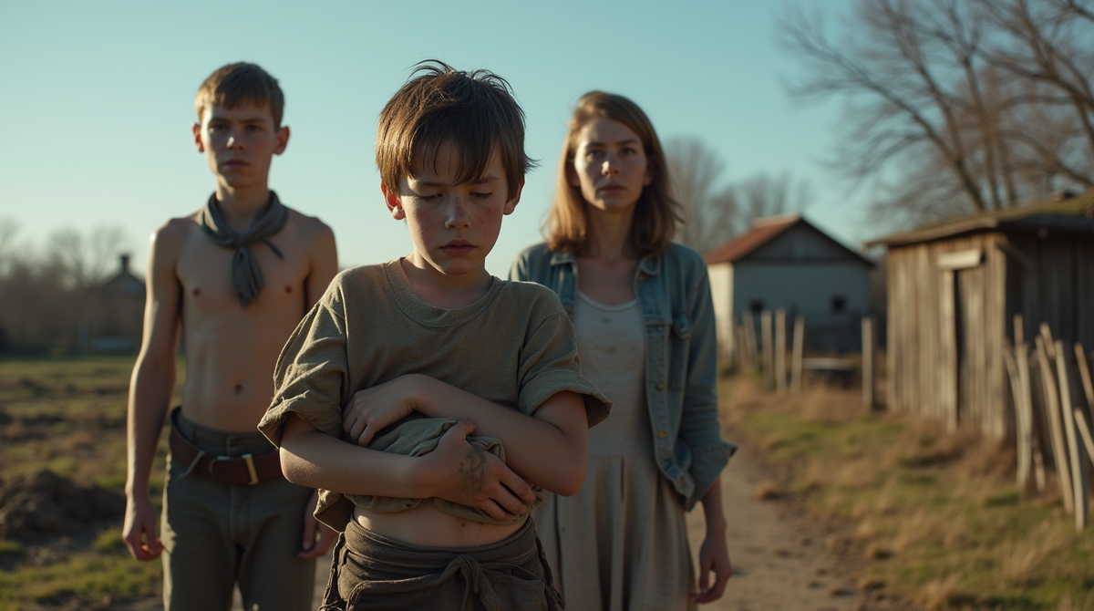 Когда Наталья выглянула в окно в то утро, её затошнило. Не от вида — от понимания. Тимофей волок мальчишку по двору, держа его за шиворот грязной майки. В другой руке — топор. Данила молчал. Как всегда. Просто волочил ногами по земле, вскидывал руки, будто хотел схватиться за что-то. Но не мог. Я видела эту сцену через забор — мой огород примыкает к их ферме. И вот тогда я поняла: молчать больше нельзя. Вообще никак.