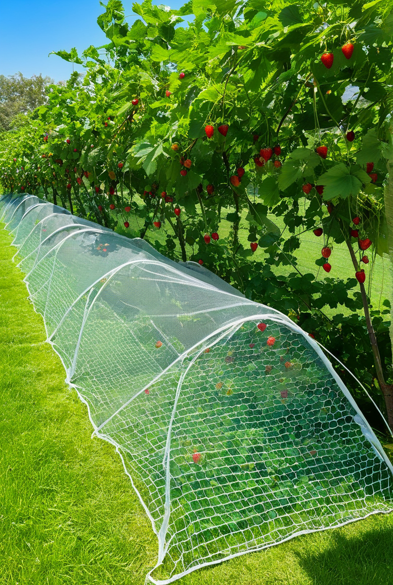 Защитная сетка, надёжное укрытие от птиц, спасающее урожай. Ваша клубника, черешня и виноград будут в полной безопасности от скворцов и прожорливых дроздов.