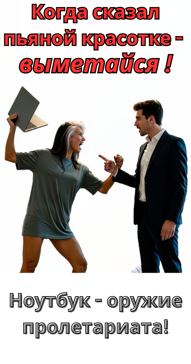 Я оттолкнул грубее и сказал: «Выметайся отсюда!» Она шлёпнулась на кровать, но тут же вскочила на ноги как опытный боец - её лицо превратилось в лицо фурии. Какое то злобно-насмешливое. В мгновение ока девица схватила неосмотрительно оставленный мной на кровати ноутбук и метнула его. Метко. Четко так влетел мне в лоб, в глазах потемнело. Далее в ее руках я увидел что то вроде пращи - это был ее дорогущий MP3-плеер Apple, который она крутила в руке на шнуре от наушников. Плеер был запущен в меня не так метко, как н