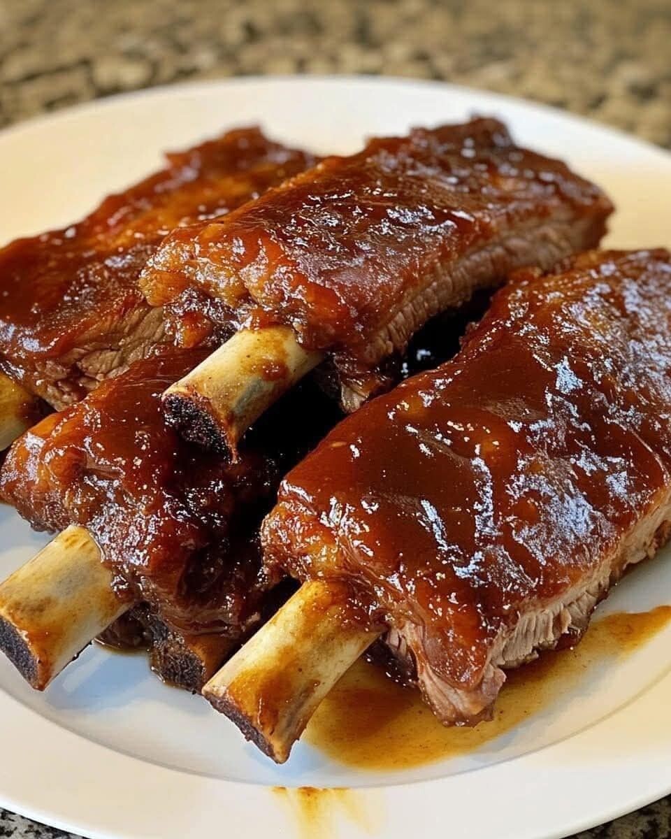 Замариновать ребра в любом соусе, какой сами придумаете. Пару часов мариновать. Потом завернуть в фольгу и на 180 градусов на два часа в духовку.