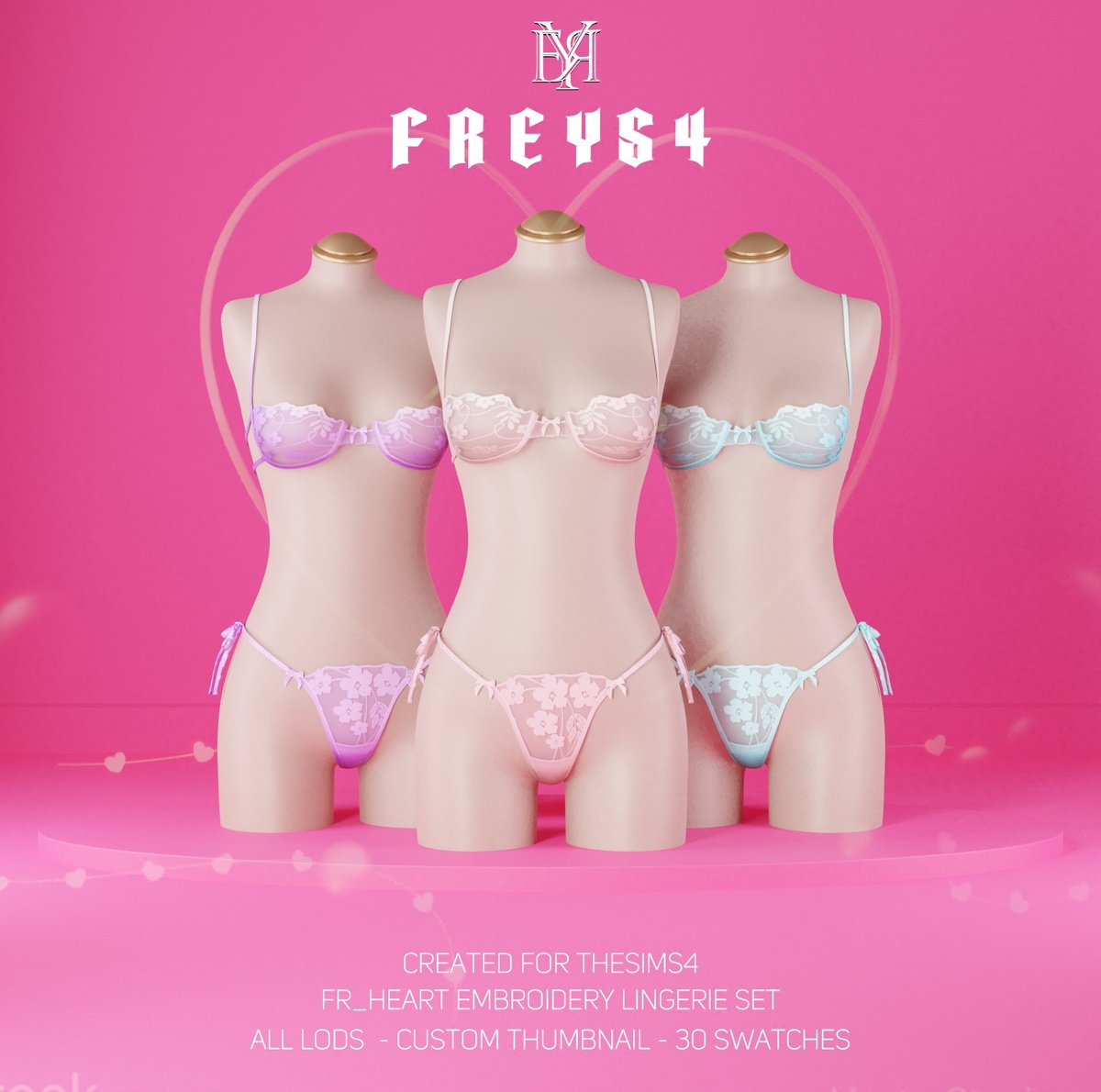 Установить мод Нижнее белье - Heart Embroidery Lingerie Set для Симс 4 - #Нижнеебелье@simsfans_ru