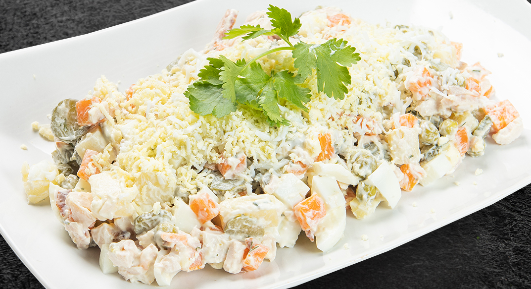 - Без мяса — для вегетарианцев можно сделать "столичный" без курицы, увеличив долю горошка и картофеля.