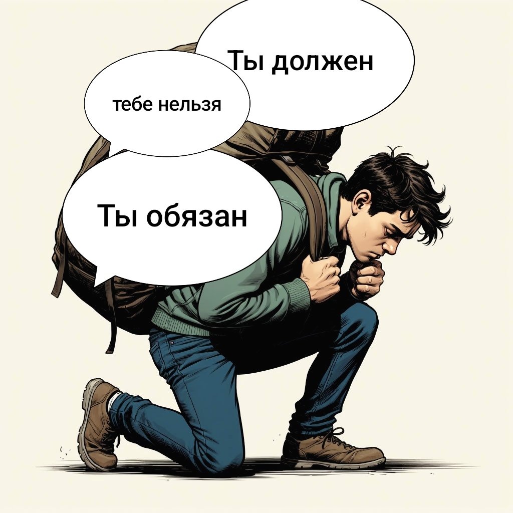 Представьте, что вы носите в своем психологическом рюкзаке чужие вещи. Сначала кажется, что они помогают, но с годами рюкзак становится неподъемным.