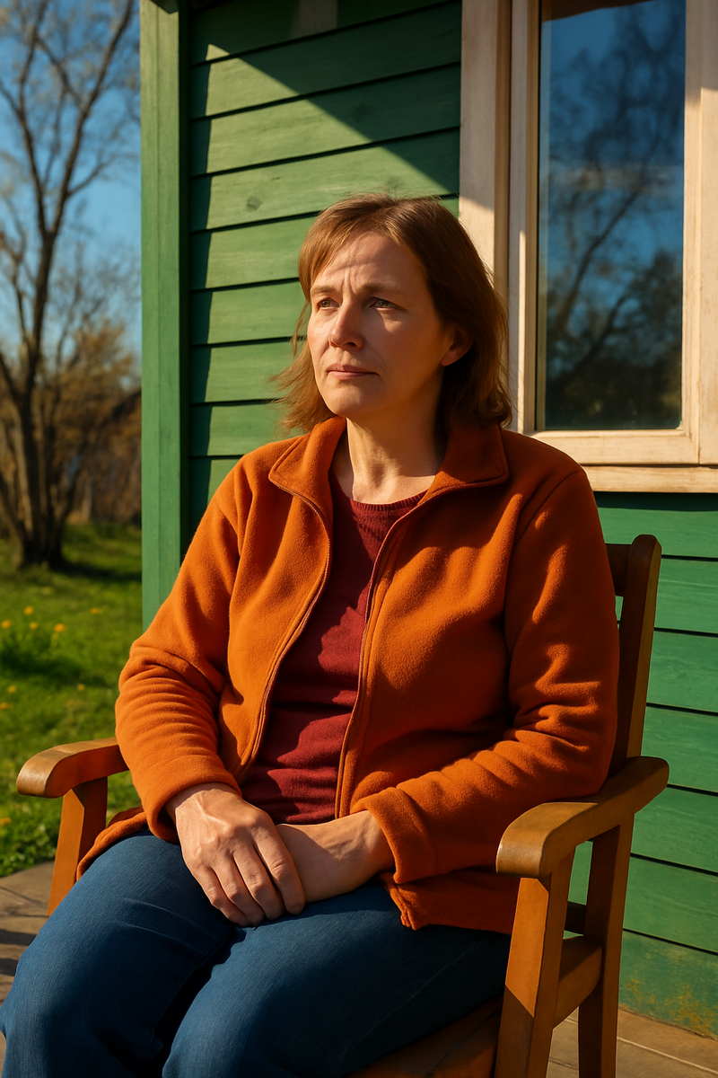 К вечеру, когда небо стало густо-синим, Галя сидела на крыльце с кружкой остывшего чая. Ветер трогал рукава её куртки, но уже без того пронизывающего холода зимы.